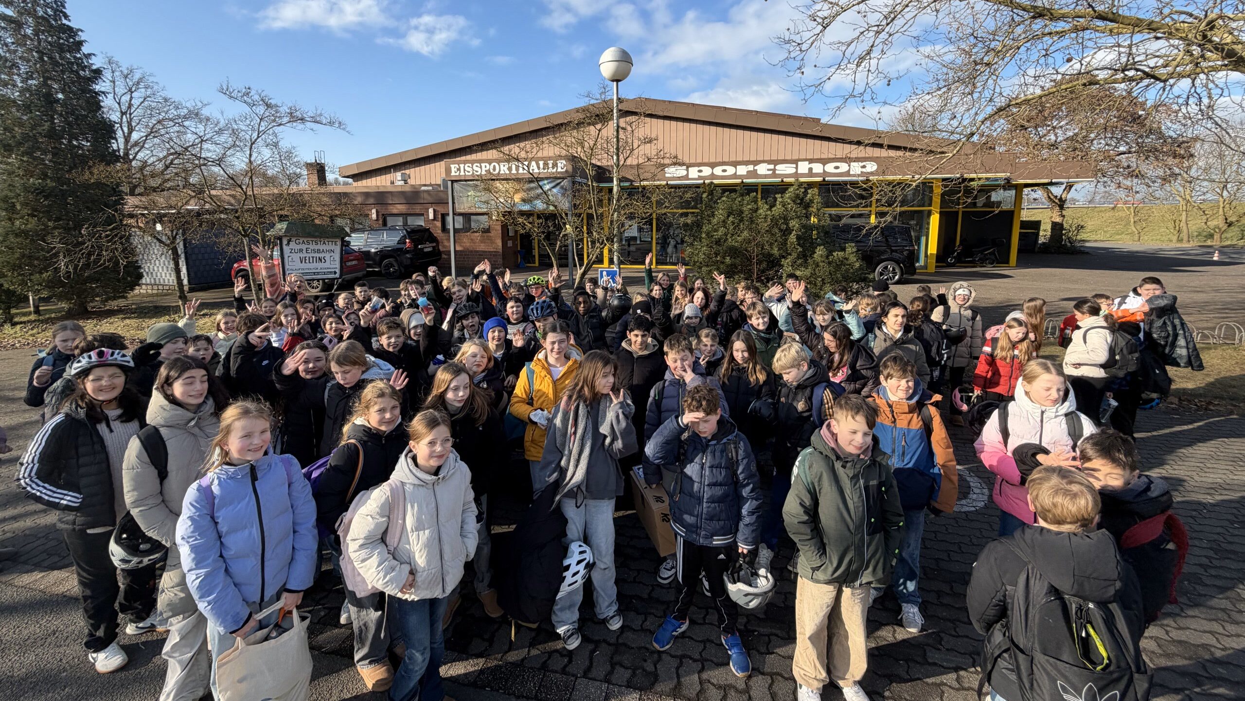 Im Rahmen des Sportunterrichts unternahm die gesamte Jahrgangsstufe 5 der Freiherr-vom-Stein-Realschule Coesfeld am 02.02.2026 einen Ausflug in die Eishalle Dorsten. Der Eislauftag knüpfte an das Themenfeld „Gleiten, Fahren, Rollen“.